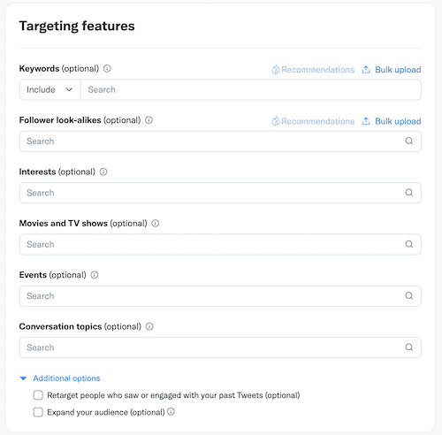 You can also get super targeted with who sees your ad. You can show it to people who are like the followers of another account, you can show it to people with a broad interest in a topic, you can show it to people who recently tweeted about a topic, and you can even show it to people who recently interacted with one of your tweets but doesn’t follow you yet.