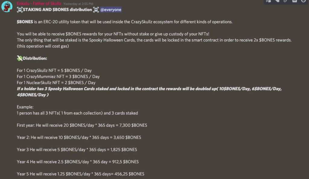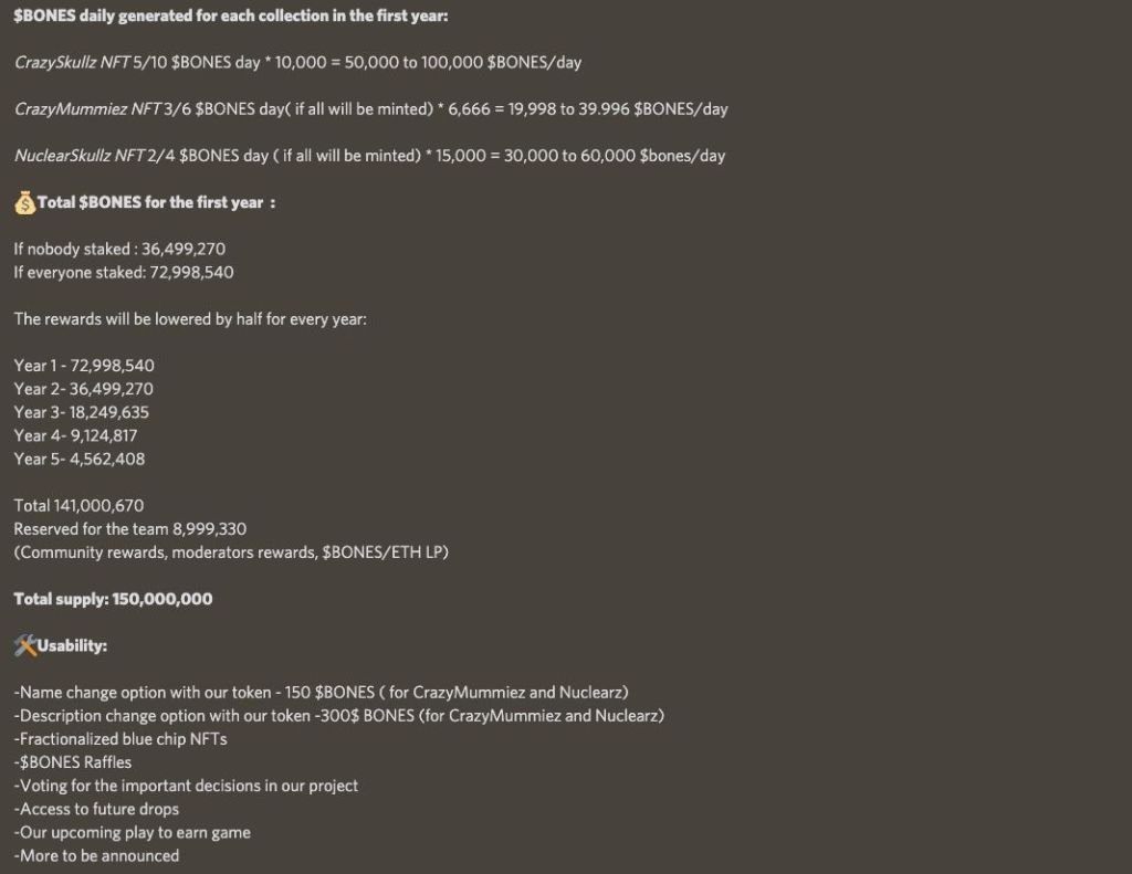 All of these various NFTs have value in the form of $BONES tokens, which will fractionalize the ownership of a larger portfolio of NFTs, creating an underlying asset for the $BONES token to be pinned to. If the value of the underlying portfolio rises, it makes it so people don’t want to sell their Skullz. The lack of supply leads to increased demand and the price goes up. People want in because of the fractionalized NFT portfolio and members never want to leave because staying could be too profitable in the long run.