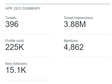 I gained over 15,000 new followers in April alone and had close to 4 million impressions!