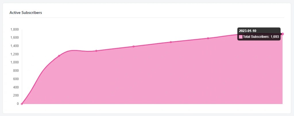 Here is a screenshot of my newsletter growth from January, right before I passed 1,700 subscribers for Future Tool Weekly.
