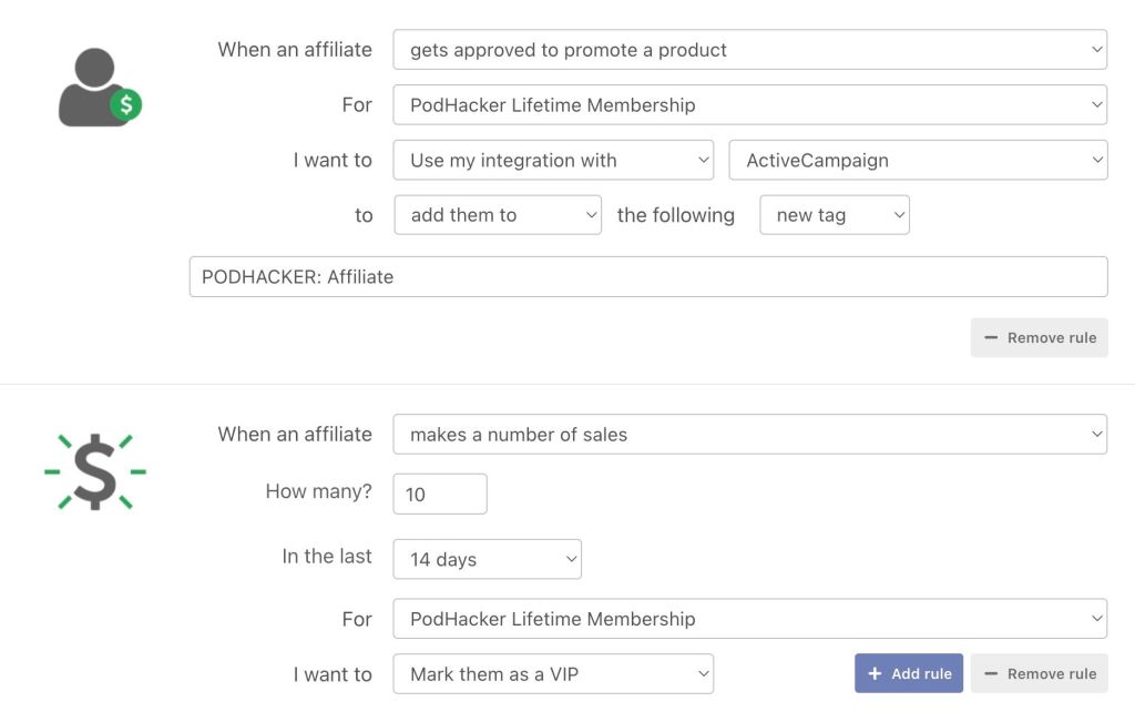 You can create behavior rules for your cart. This is something that makes ThriveCart really unique. Imagine being able to create “if-then” statements for almost any action. If a product is purchased with an affiliate’s link, give them X tag in Active Campaign, add them to a Google Sheet, and add them to this members area. If an affiliate reaches X amount of sales, tag them in Aweber, and boost their commissions from 40% to 50%… The automation potential of everything you can do in ThriveCart is insane. Imagine Zapier built directly into ThriveCart.