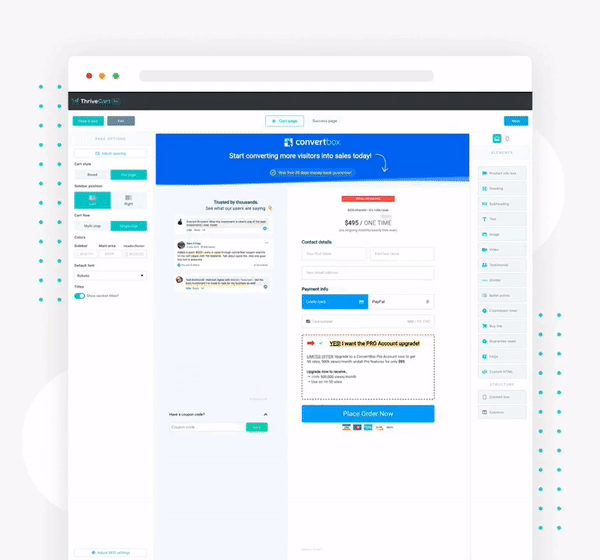 The checkout page builder is next level. ThriveCart has a complete drag-and-drop checkout page builder. You can customize your checkout to look like whatever you can imagine. I’ve seen checkout pages that you’d never know weren’t custom coded because the design is so tailored to the brand.